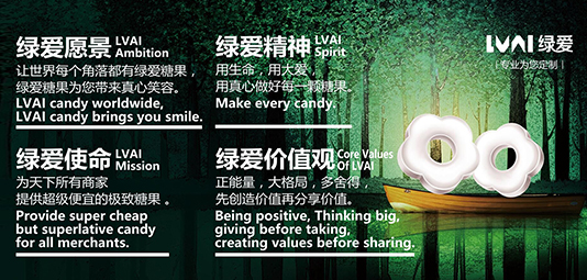 綠愛(ài)糖果堅持“讓世界每個(gè)角落都有綠愛(ài)糖果、綠愛(ài)糖果為您帶來(lái)真心笑容”的企業(yè)愿景,以“為天下所有商家提供超級便宜的糖果”為使命,首創(chuàng )了“個(gè)性化定制+互聯(lián)網(wǎng)+大數據+精準傳媒”的商業(yè)模式,在國內率先實(shí)現了個(gè)性化定制的工業(yè)化生產(chǎn),實(shí)現了1箱起定、24小時(shí)交貨的“負庫存”定制生產(chǎn)模式,服務(wù)于汽車(chē)、地產(chǎn)、銀行、航空、金融、餐飲、酒店、休閑、娛樂(lè )、婚慶等40余個(gè)行業(yè),十萬(wàn)家客戶(hù)。