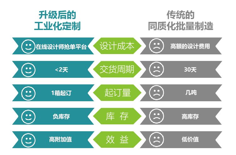 第一解決產(chǎn)品個(gè)性化,柔性化,小批量定制方案(C2M按需定制)。 第二解決產(chǎn)品一箱起定24小時(shí)交貨的落地方案(極速)。 第三解決產(chǎn)品在線(xiàn)不停機大規模定制方案(不增加成本)。 第四解決不投大資金改造方案(無(wú)需改造廠(chǎng)房,改造生產(chǎn)線(xiàn))。 第五解決接單,支付,財務(wù),生產(chǎn),物流的全系統工程(定制商城)。 第六免費為您產(chǎn)品定位。 第七免費為您梳理商業(yè)模式。 第八免費為您招商策劃。 第九免費為您運營(yíng)咨詢(xún)。 第十免費考察綠愛(ài)實(shí)體工廠(chǎng)及商業(yè)模式。